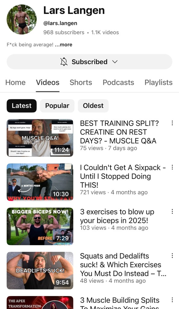 I follow @lars.langen for great workout and diet advice. Here’s a great cheat-sheet on muscle gain secrets, and how to find him on YouTube.