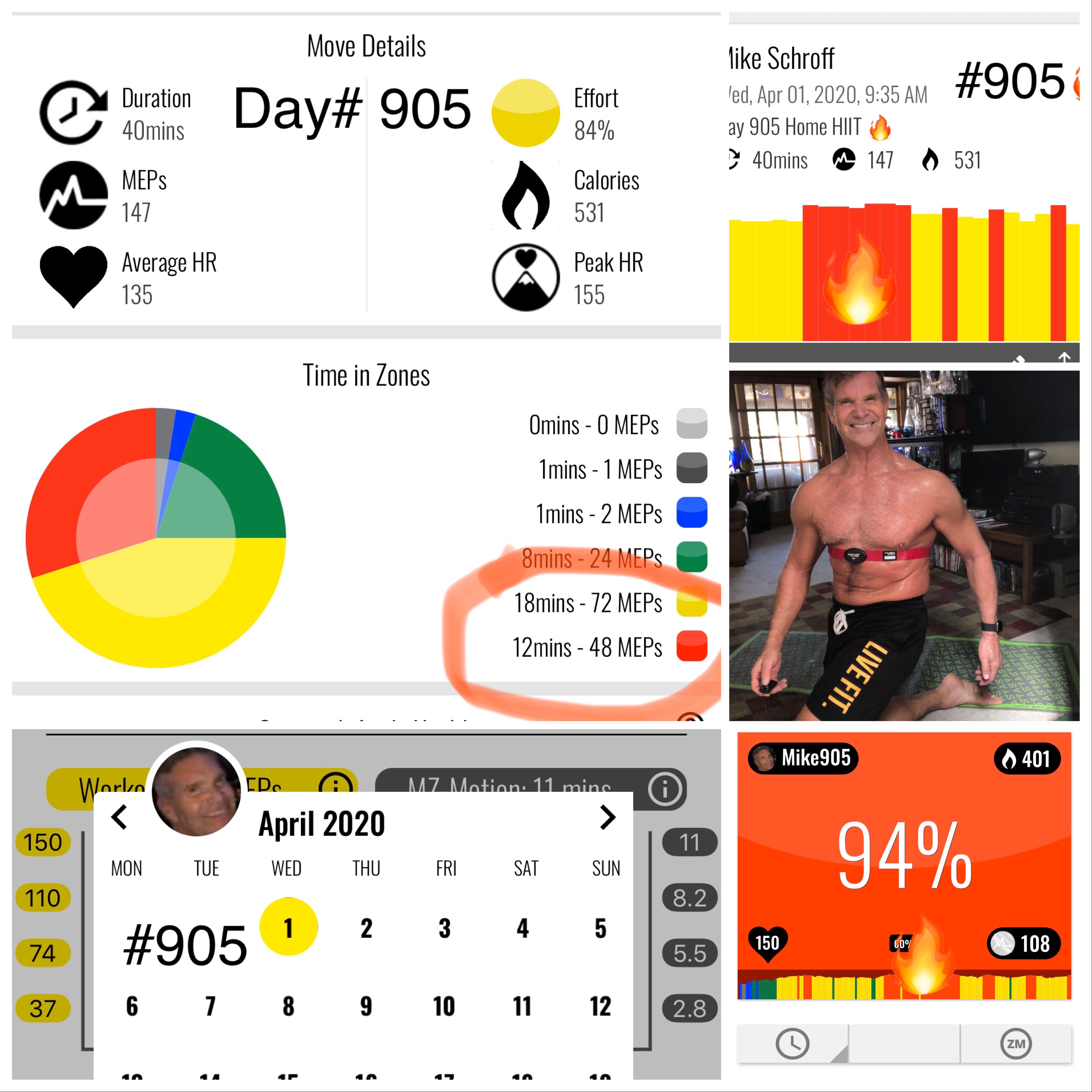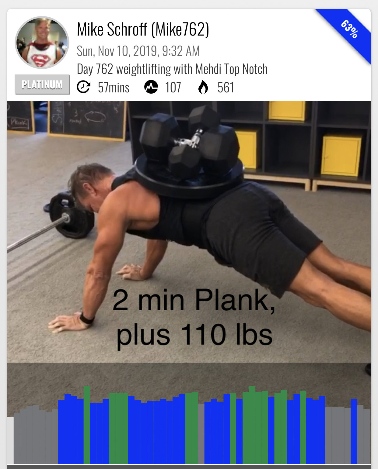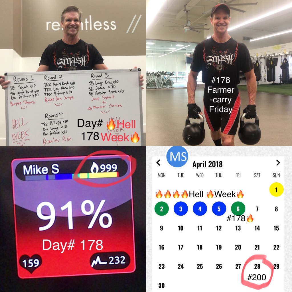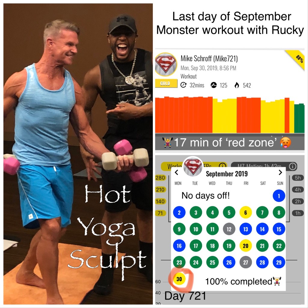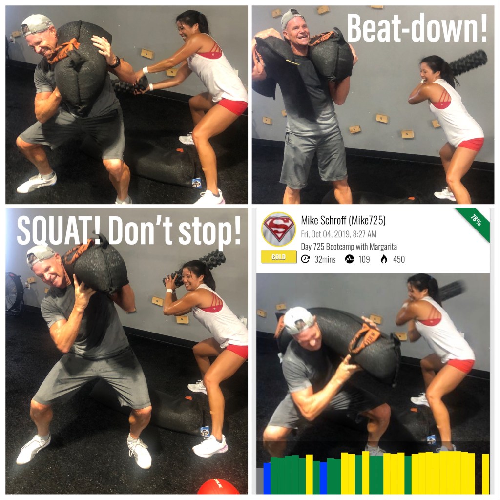 From October 8, 2017 to July 5, 2020 I worked out every day, with no days off…1000 days straight. Some days were hard (or extremely hard), and some were a bit easy, such as a recovery workout day. The criteria was to record a minimum 15 minute workout on the MyZone app, but most workouts were 60 minute HIIT or Spin sessions. Occasionally, I’d do something crazy like plank for four hours (the entire 2018 Super Bowl), push a sled with about 1,200+ lbs., complete 2,018 crunches on Jan 1, 2018, or carry a 150 lb punching bag around the building a few times.