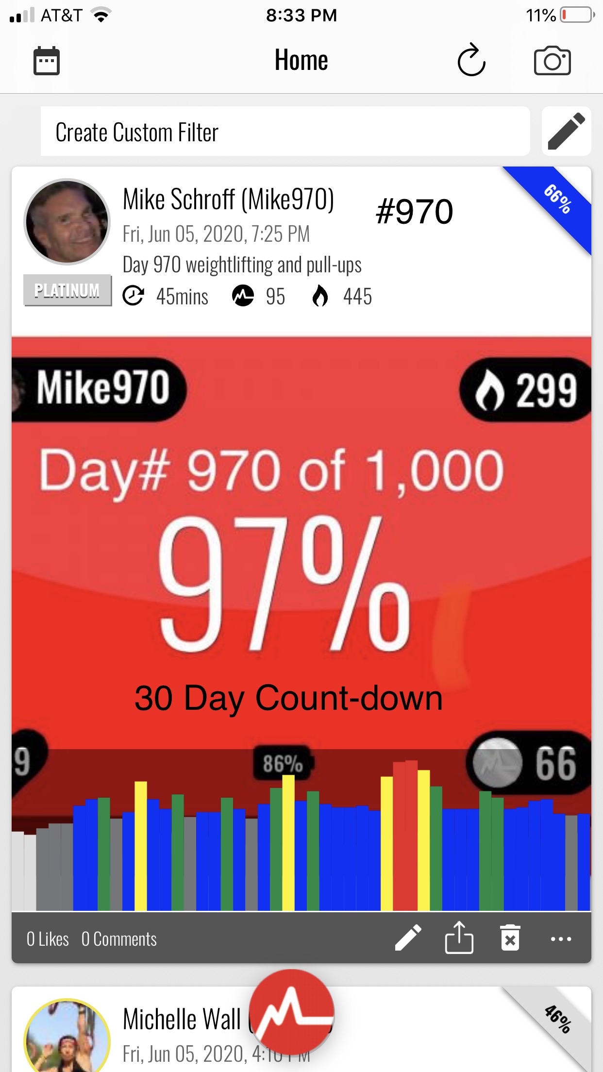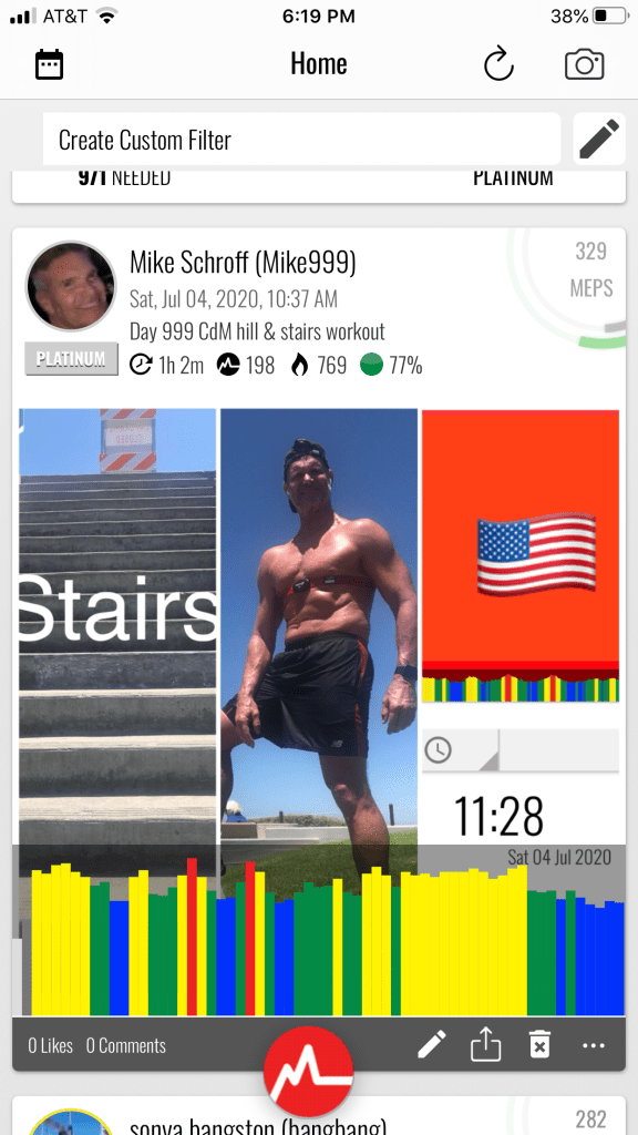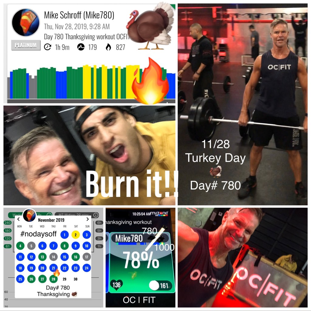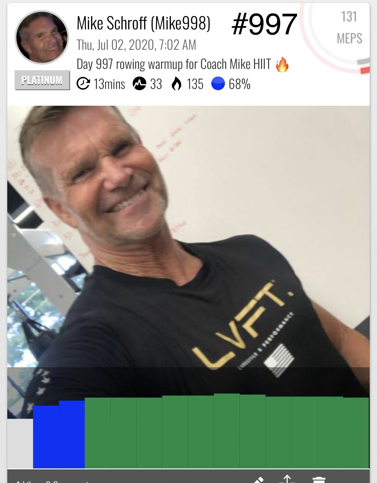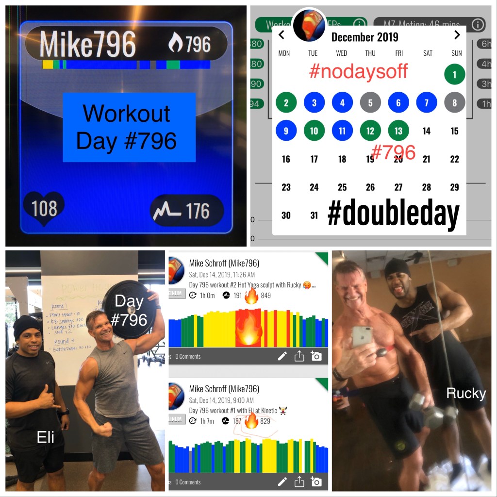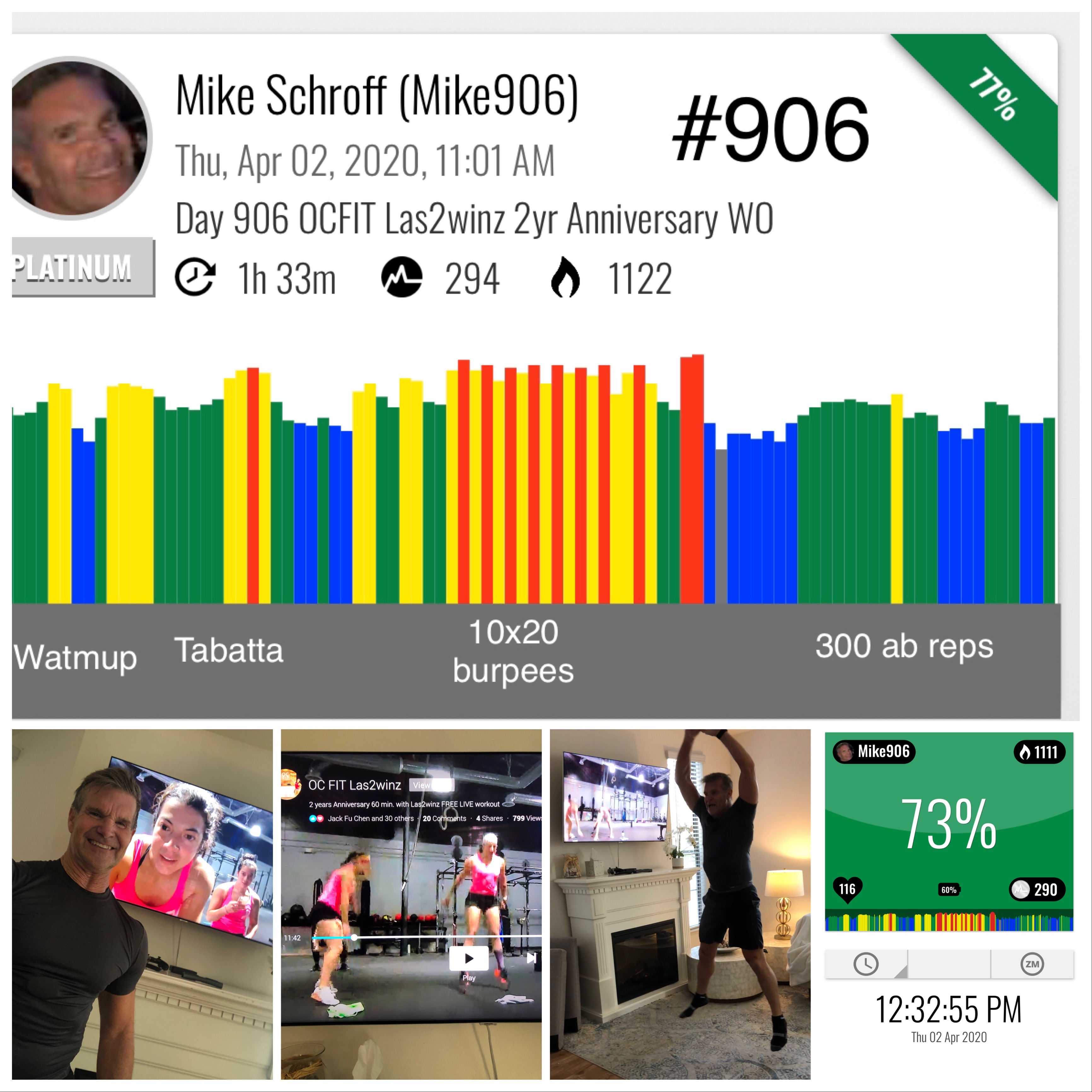 From October 8, 2017 to July 5, 2020 I worked out every day, with no days off…1000 days straight. Some days were hard (or extremely hard), and some were a bit easy, such as a recovery workout day. The criteria was to record a minimum 15 minute workout on the MyZone app, but most workouts were 60 minute HIIT or Spin sessions. Occasionally, I’d do something crazy like plank for four hours (the entire 2018 Super Bowl), push a sled with about 1,200+ lbs., complete 2,018 crunches on Jan 1, 2018, or carry a 150 lb punching bag around the building a few times.