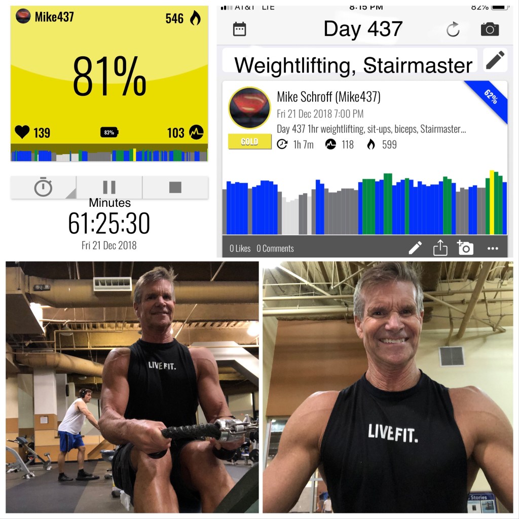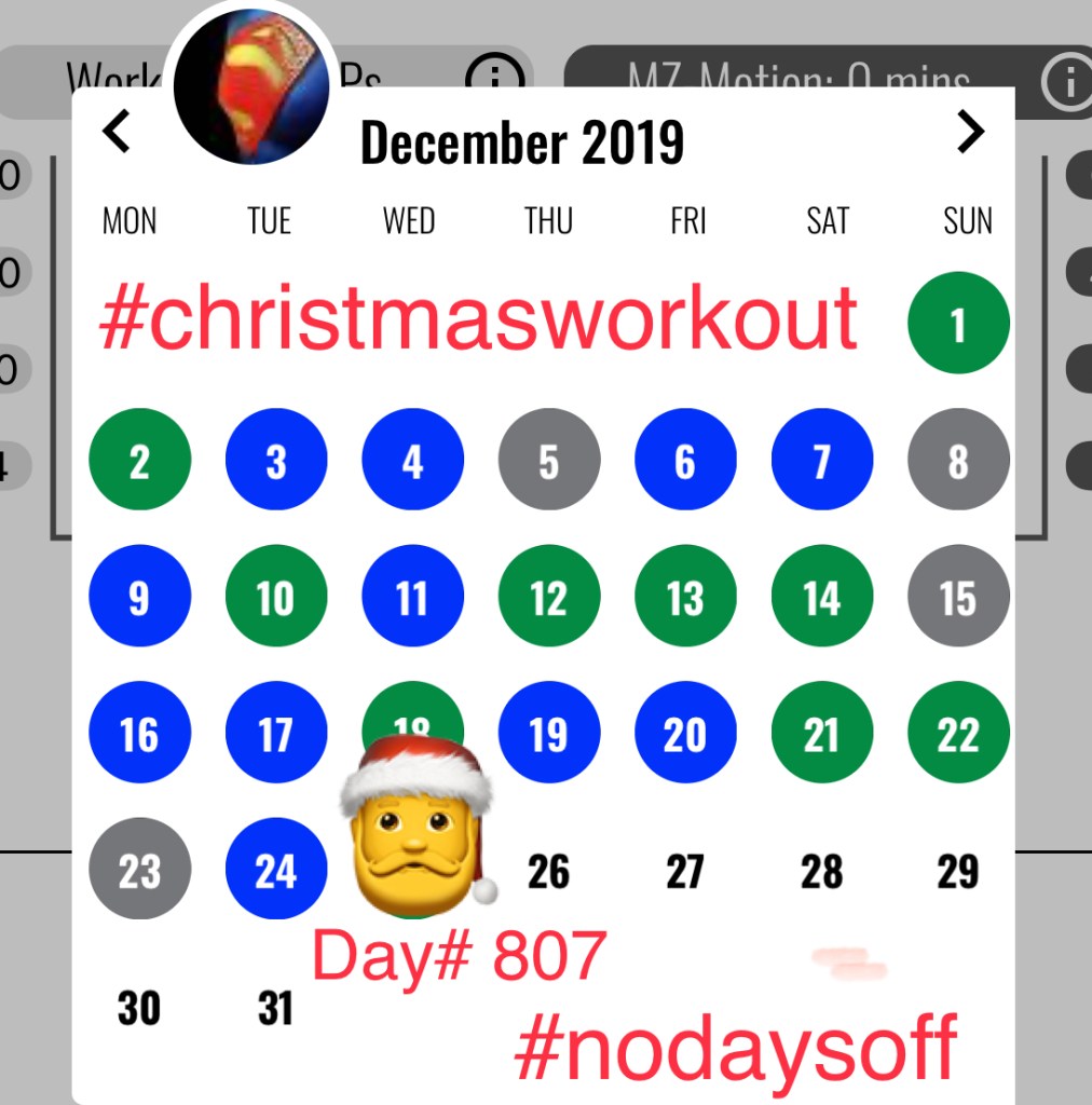 A numerical feat! Consecutive workout day # matched my body weight. That’s hard to do, and could only happen for a few possible days, and then become impossible. Timing had to be perfect.