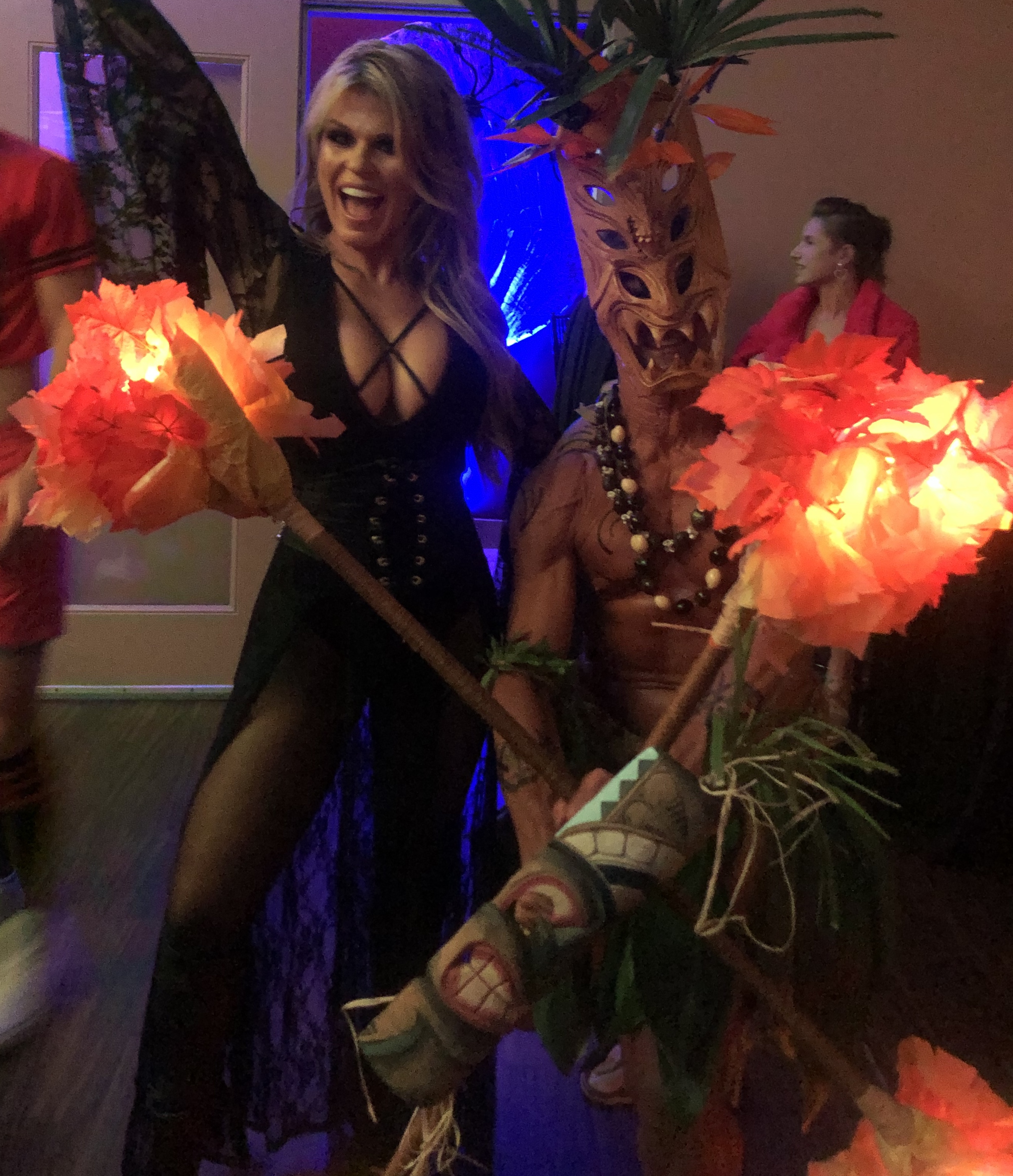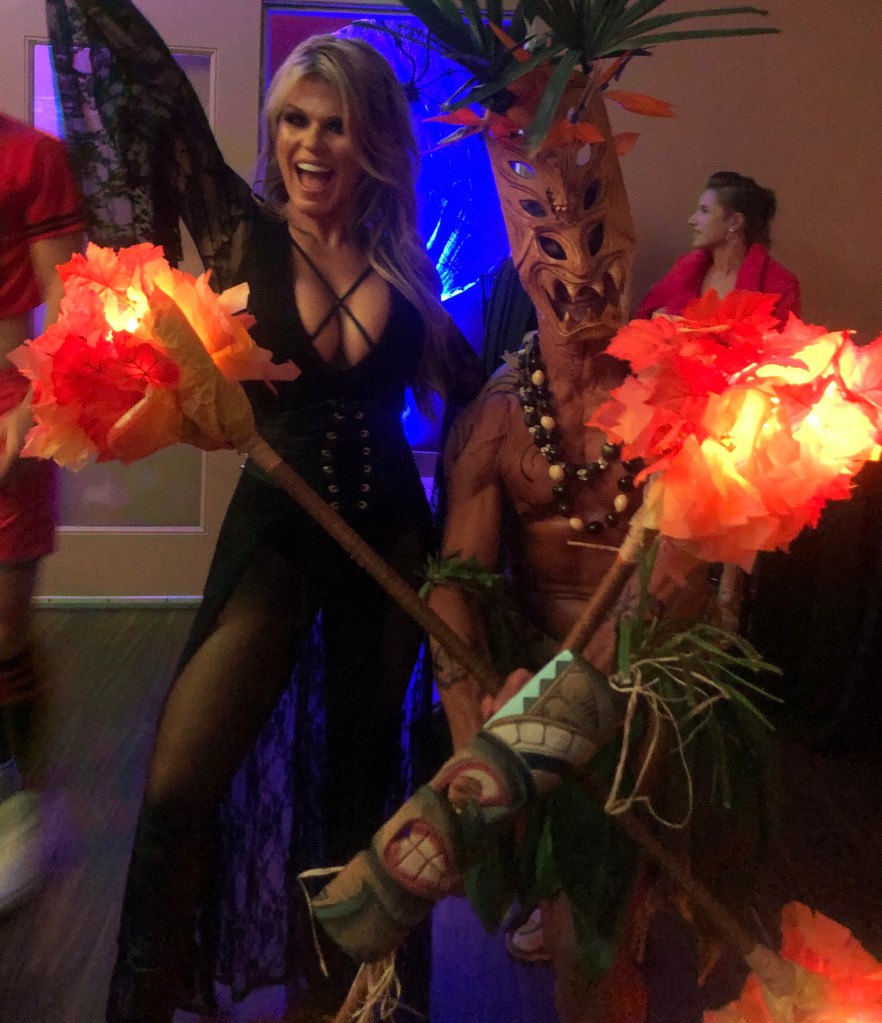 Another hot Halloween at Radiant Hot Yoga. Contest winner, Polynesian Fire Dancer (and a lot of skin showing lol)