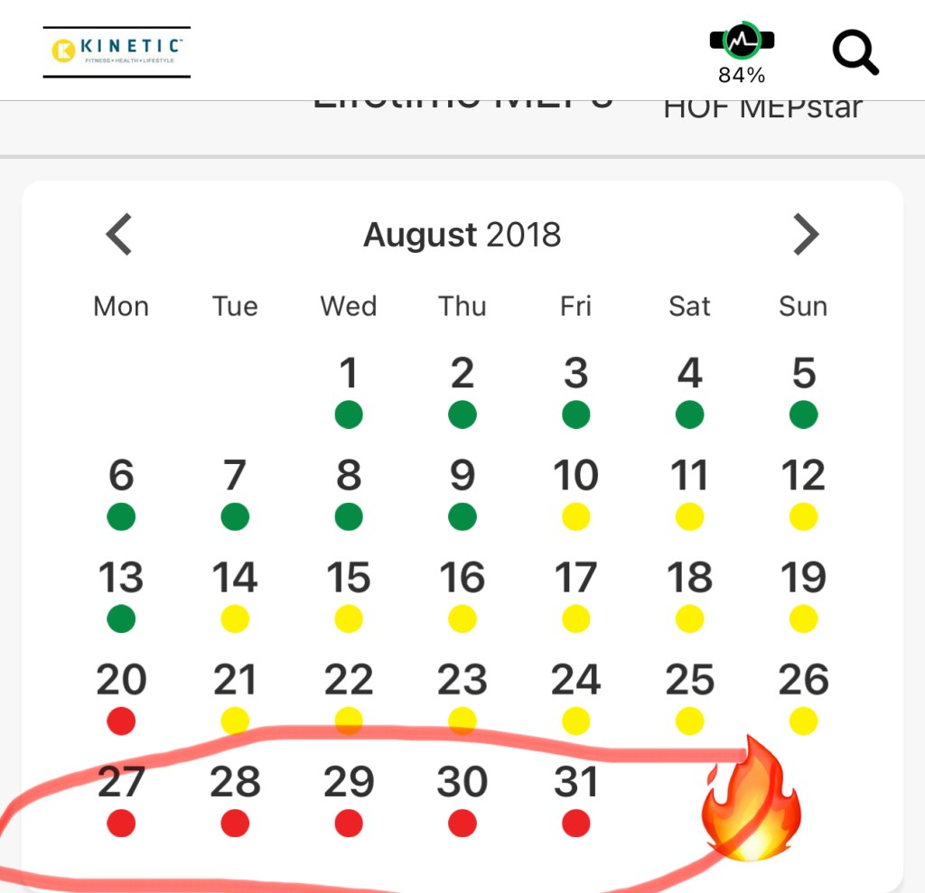 Red dot workouts are hard! Over 90% average heart rate for entire workout. Fire week!