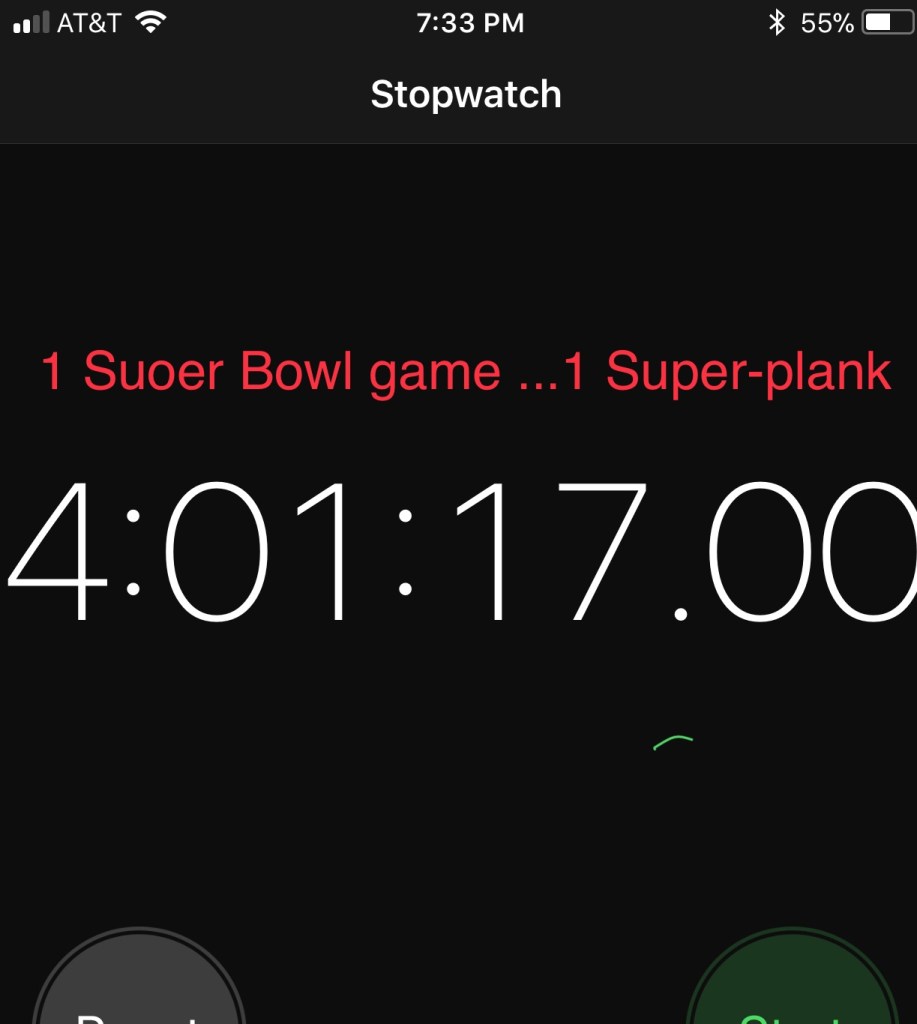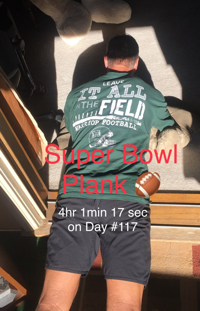 100 minute plank. 2,018 crunches on New Year’s Day 2018.